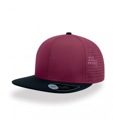 100% poliestere. visiera: 100% cotone. cappellino a 6 pannelli con visiera piatta squadrata, 4 cuciture sulla visiera, chiusura a strappo, taglia unica.