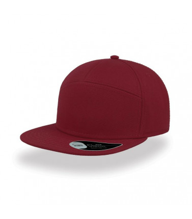 100% cotone. 5 pannelli, occhielli ricamati, visiera piatta, pannello frontale rinforzato, chiusura in pvc, 6 cuciture su visiera, parasudore in cotone.