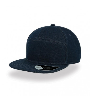 100% cotone. 5 pannelli, occhielli ricamati, visiera piatta, pannello frontale rinforzato, chiusura in pvc, 6 cuciture su visiera, parasudore in cotone.