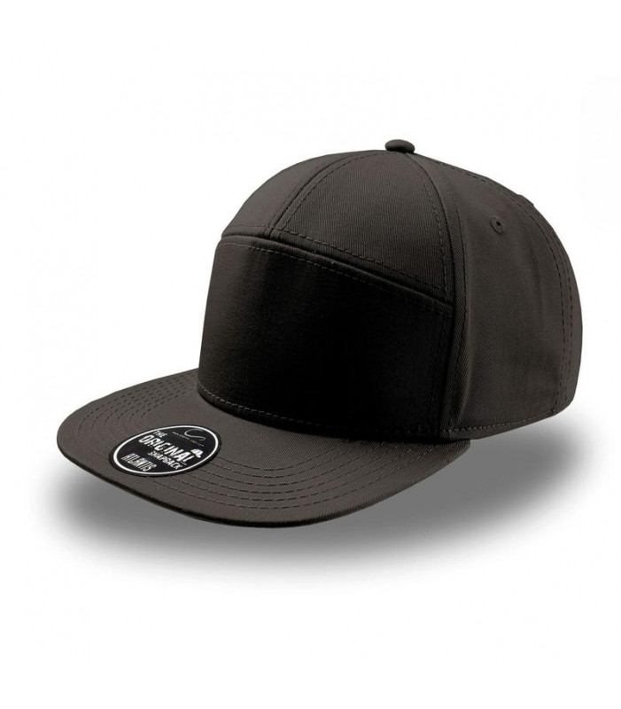 100% cotone. 5 pannelli, occhielli ricamati, visiera piatta, pannello frontale rinforzato, chiusura in pvc, 6 cuciture su visiera, parasudore in cotone.