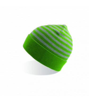 95% cotone 5% elastan. cuffia con risvolto, 6 cuciture a chiusura, fantasia a strisce di colore contrastante, taglia unica.