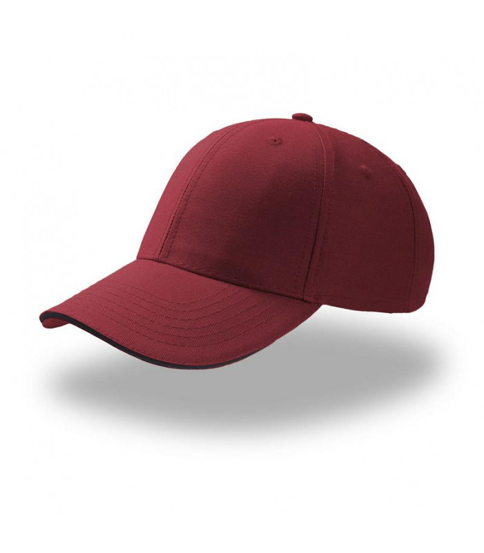 baseball in 100% cotone twill. visiera precurvata, tipo sandwich, con inserto a contrasto. pannello frontale rinforzato. chiusura con cinturino in tessuto passante su fibbia in metallo.