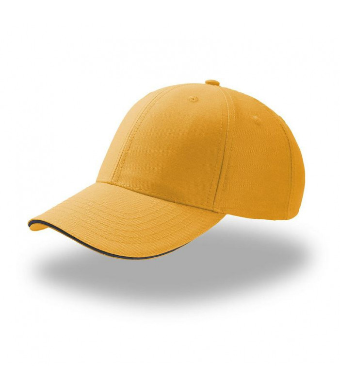 baseball in 100% cotone twill. visiera precurvata, tipo sandwich, con inserto a contrasto. pannello frontale rinforzato. chiusura con cinturino in tessuto passante su fibbia in metallo.