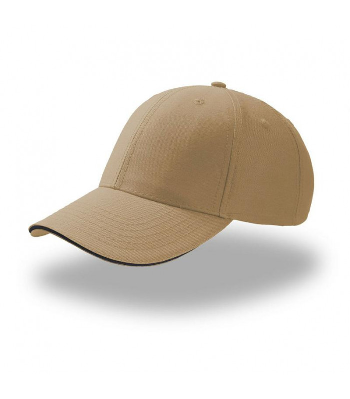 baseball in 100% cotone twill. visiera precurvata, tipo sandwich, con inserto a contrasto. pannello frontale rinforzato. chiusura con cinturino in tessuto passante su fibbia in metallo.