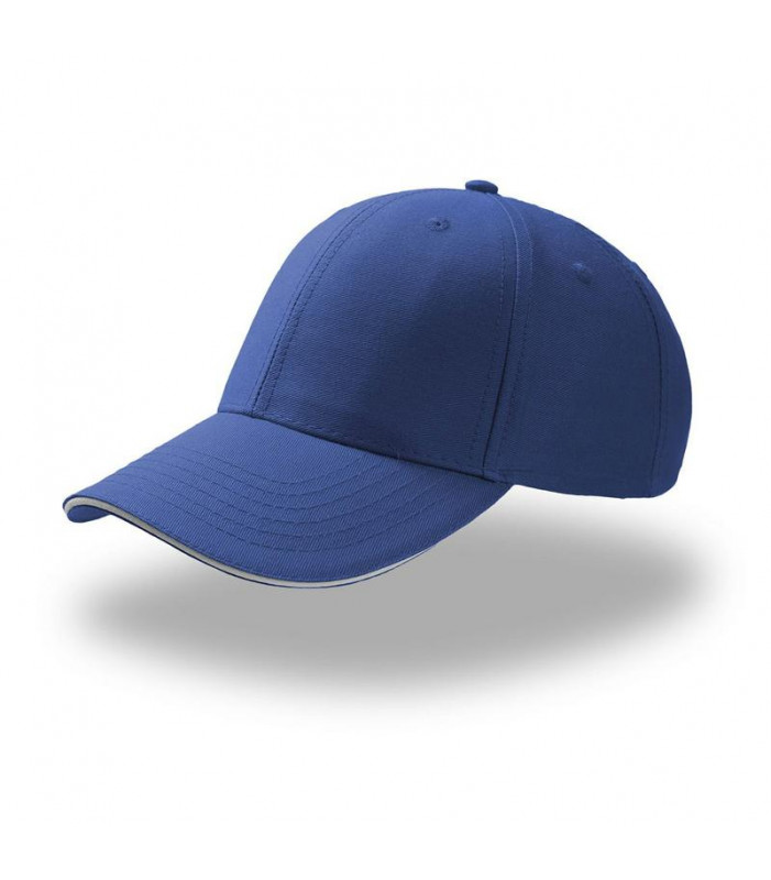 baseball in 100% cotone twill. visiera precurvata, tipo sandwich, con inserto a contrasto. pannello frontale rinforzato. chiusura con cinturino in tessuto passante su fibbia in metallo.