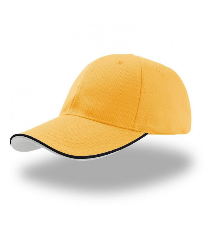 cappellino 35% cotone 65% poliestere. visiera con piping a contrasto in rilievo. sottovisiera a contrasto. chiusura con cinturino in tessuto e velcro.