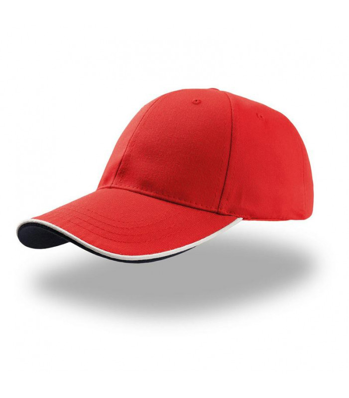 cappellino 35% cotone 65% poliestere. visiera con piping a contrasto in rilievo. sottovisiera a contrasto. chiusura con cinturino in tessuto e velcro.