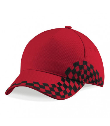 100% cotone twill. un tocco di modernità sul motivo della bandiera a scacchi. il ricamo dinamico si integra molto bene con la forma del cappello. regolazione taglia con velcro a strappo.