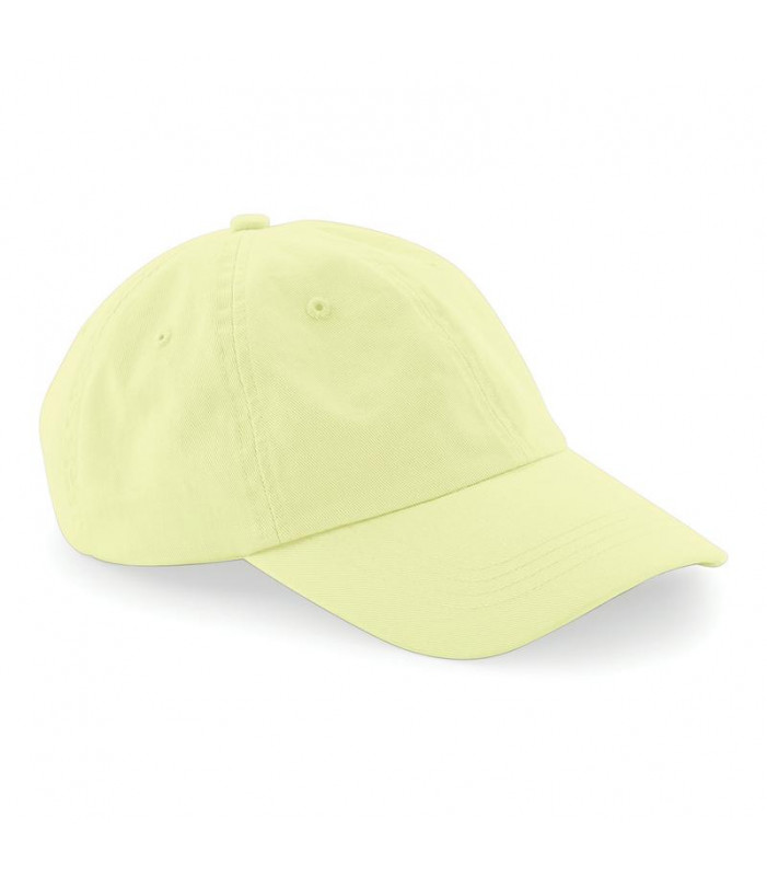 100% cotone chino. design a 6 pannelli, calotta morbida senza intelaiatura, visiera pre-curvata, occhielli di ventilazione cuciti, chiusura con fibbia e occhiello satinato, etichetta facilmente rimovibile.