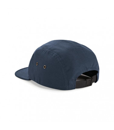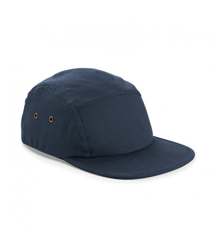 100% cotone canvas. cappellino 5 pannelli, visiera piatta, occhielli in metallo sul lato. regolazione taglia con fibbia con gancio a scatto. etichetta strappabile.