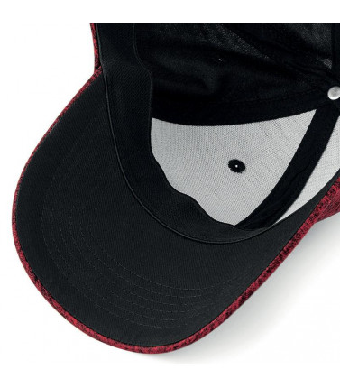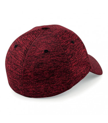 93% poliestere 7% elastan. cappellino a 6 pannelli elasticizzato con etichetta rimovibile, pannello frontale strutturato, visiera pre-curvata, sotto visiera in cotone nera, occhielli di ventilazione cuciti, taglia unica.