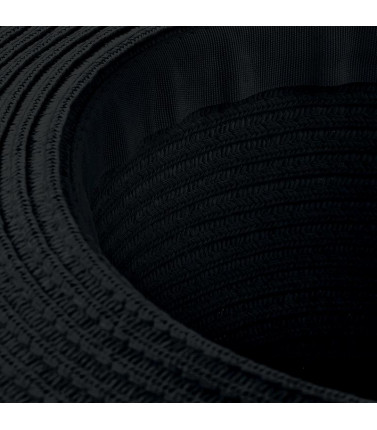 100% paglia, banda elastica 100% poliestere. cappello con cupola tonda, ampia tesa, taglia unica.