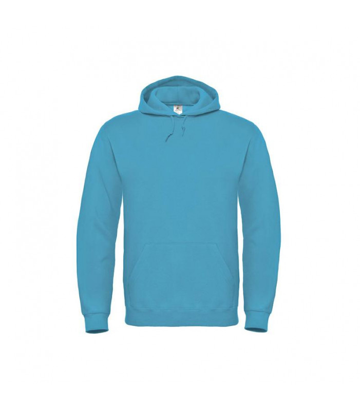 80% cotone, 20% poliestere, felpata internamente, con cappuccio doppio.busto tubolare, tasca a marsupio.