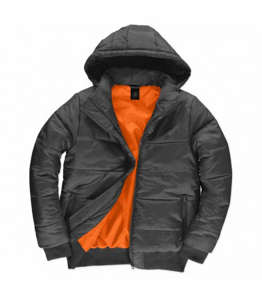 giacca imbottita stile bomber, esterno 100% poliestere 300t taffeta impermeabile, imbottitura interna 100% poliestere cotton feel. cappuccio imbottito regolabile e removibile. colletto sostenuto e fodera interna con colore a contrasto per un look piu' mod