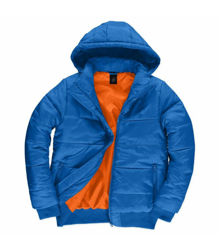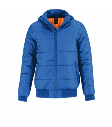 giacca imbottita stile bomber, esterno 100% poliestere 300t taffeta impermeabile, imbottitura interna 100% poliestere cotton feel. cappuccio imbottito regolabile e removibile. colletto sostenuto e fodera interna con colore a contrasto per un look piu' mod