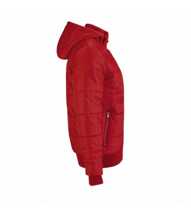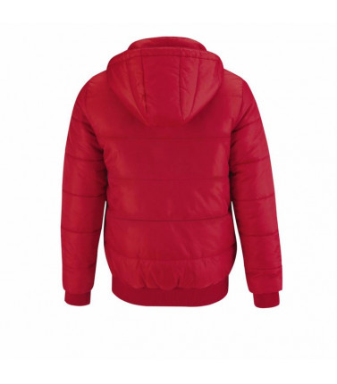 giacca imbottita stile bomber, esterno 100% poliestere 300t taffeta impermeabile, imbottitura interna 100% poliestere cotton feel. cappuccio imbottito regolabile e removibile. colletto sostenuto e fodera interna con colore a contrasto per un look piu' mod