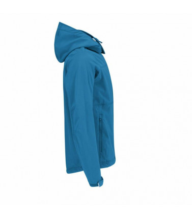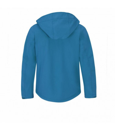 giacca tecnica, esterno 94% poliestere, 6% elastane. tessuto triplo strato (esterno softshell, interno traspirante, fodera micro-fleece) interno 100% poliestere. maniche set in, cappuccio removibile per mezzo di zip e regolabile con elastico, 2 tasche fro
