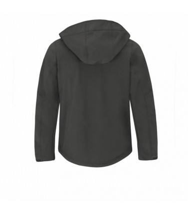 giacca tecnica, esterno 94% poliestere, 6% elastane. tessuto triplo strato (esterno softshell, interno traspirante, fodera micro-fleece) interno 100% poliestere. maniche set in, cappuccio removibile per mezzo di zip e regolabile con elastico, 2 tasche fro
