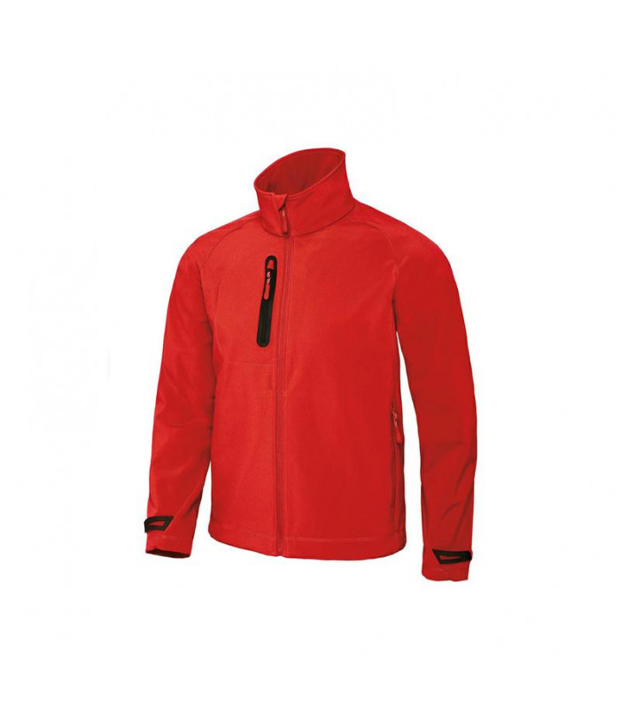 94% poliestere, 6% elastane. giacca in softshell a 3 strati, dotata di membrana traspirante, con microfori, parte interna 100% poliestere, in maglia. taschino al petto con zip e passante interno, 2 tasche laterali con zip, protezione per il mento, velcro sui polsini per regolarli, cordino interno in vita elasticizzato e stopper.