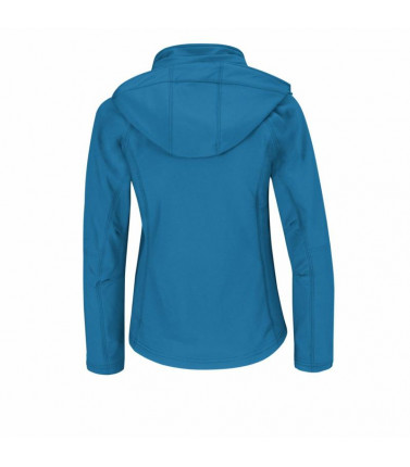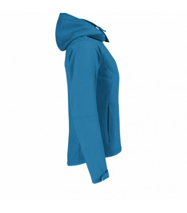 giacca tecnica, esterno 94% polyestere 6% elastane. tessuto triplo strato (esterno softshell, interno traspirante, fodera micro-fleece) interno 100% poliestere. taglio femminile, maniche taglio raglan, cappuccio removibile per mezzo di zip e regolabile co