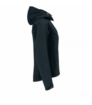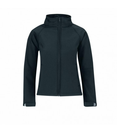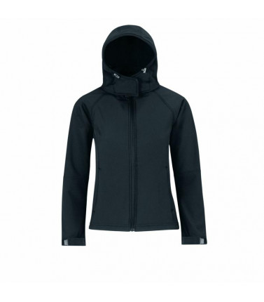 giacca tecnica, esterno 94% polyestere 6% elastane. tessuto triplo strato (esterno softshell, interno traspirante, fodera micro-fleece) interno 100% poliestere. taglio femminile, maniche taglio raglan, cappuccio removibile per mezzo di zip e regolabile co