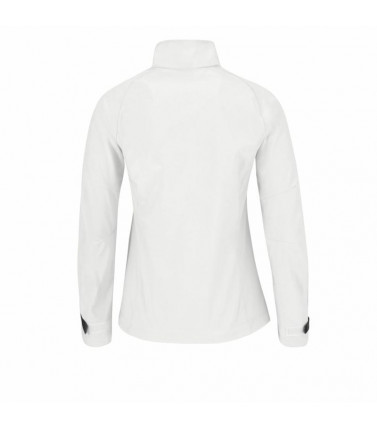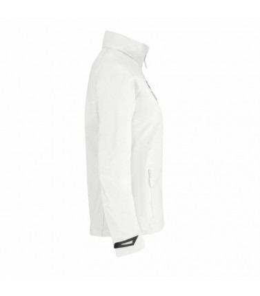 3 strati: esterno: 94% poliestere, 6% elastane, in mezzo: membrana traspirante con microfori, interno: 100% poliestere in maglia. modello femminile. taschino davanti a destra con zip e passante interno per cordino i-pod, 2 tasche laterali con zip, copri z