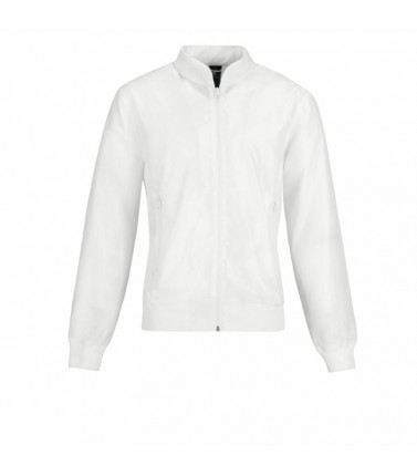 giacca leggera, esterno 100% poliestere taffeta, fodera busto 100% poliestere mesh, fodera maniche 100% poliestere taffeta. impermeabilita' 400 mm, traspirante e antivento. cappuccio ergonomico a scomparsa nel colletto, maniche a costine con elastane. fod