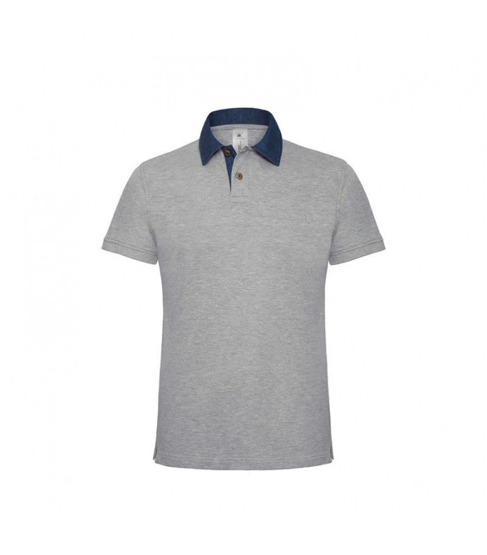 polo maniche corte, 100% cotone piquet, colletto e bottoniera in denim con due bottoni in ottone anticato. cuciture a contrasto e spacchetti laterali con dettagli interni in denim.