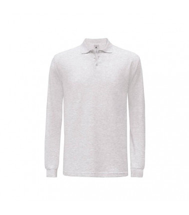 polo maniche lunghe, 100% cotone preristretto ritorto ad anelli, 3 bottoni in tinta. ash: 99% cotone, 1% poliestere. heather grey: 90% cotone, 10% poliestere.