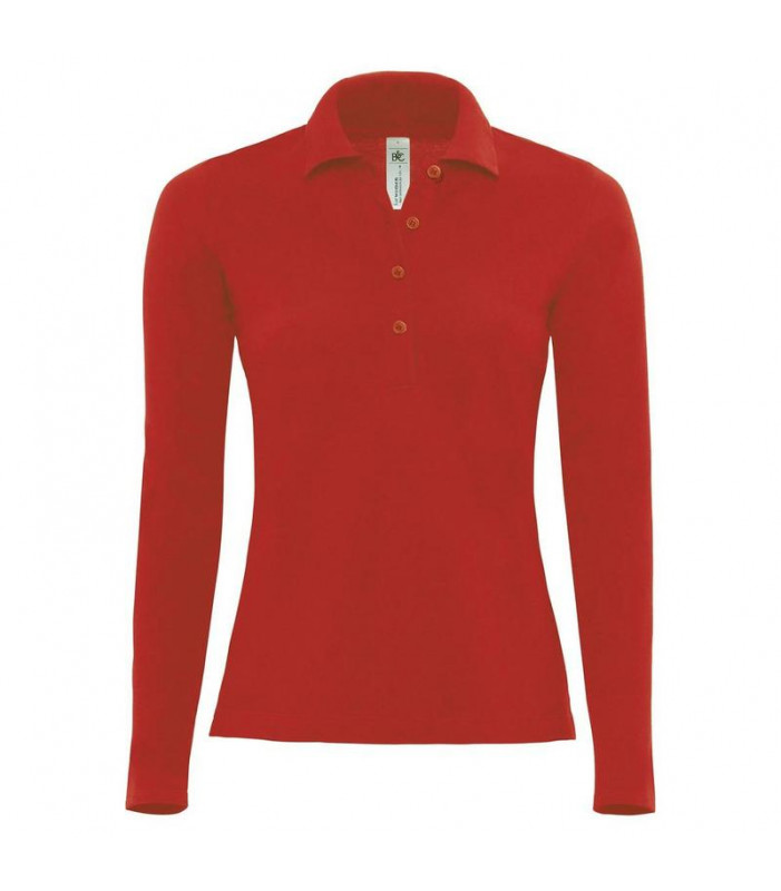 polo donna maniche lunghe, 100% cotone preristretto ritorto ad anelli, 4 bottoni tono su tono, taglio femminile, spacchetti laterali, collo in costina.