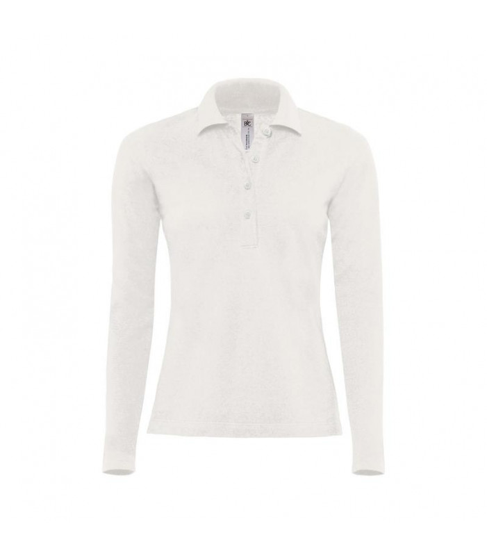 polo donna maniche lunghe, 100% cotone preristretto ritorto ad anelli, 4 bottoni tono su tono, taglio femminile, spacchetti laterali, collo in costina.