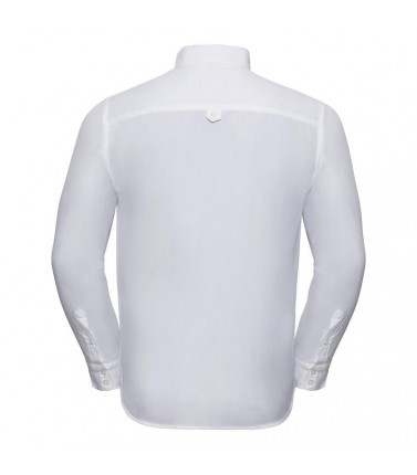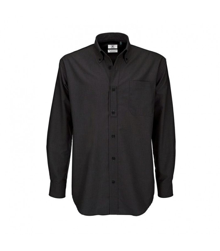 camicia maniche lunghe 70% cotone pettinato, 30% poliestere, con bottone al colletto e tasca lato cuore facile da stirare. polsini arrotondati con bottone e doppia asola orizzontale. bottoni in madre perla con cucitura a croce (bianchi per il colore oxfor