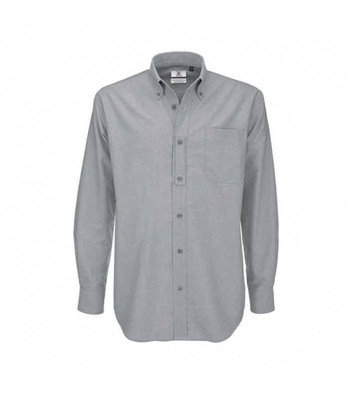 camicia maniche lunghe 70% cotone pettinato, 30% poliestere, con bottone al colletto e tasca lato cuore facile da stirare. polsini arrotondati con bottone e doppia asola orizzontale. bottoni in madre perla con cucitura a croce (bianchi per il colore oxfor