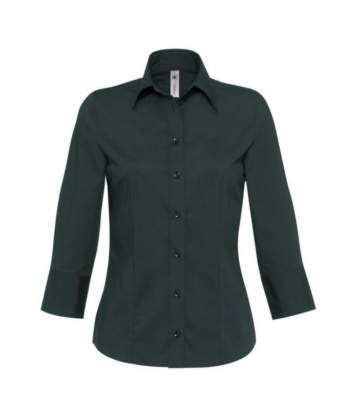 camicia donna aderente 97% cotone, 3% elastane, maniche 3/4.