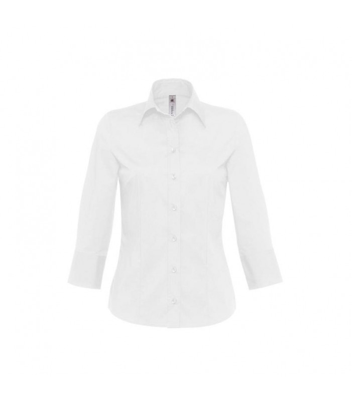 camicia donna aderente 97% cotone, 3% elastane, maniche 3/4.