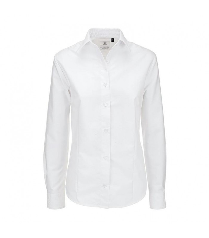 camicia maniche lunghe 70% cotone pettinato, 30% poliestere facile da stirare e dal colletto fuso al corpo dalle eleganti finiture per la figura femminile. polsini arrotondati con bottone e doppia asola orizzontale. bottoni in madre perla con cucitura a c