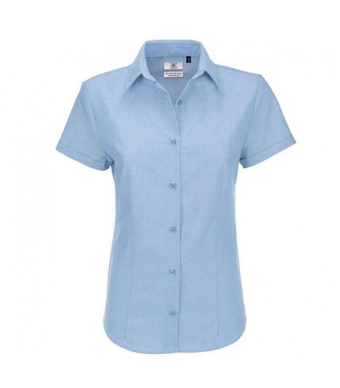 70% cotone pettinato, 30% poliestere. tessuto oxford con rifiniture facili da stirare. elegante colletto con taglio femminile. finiture con pieghe sul retro e sul davanti per un taglio più aderente. bottoni cuciti a croce con effetto madreperla che accopp