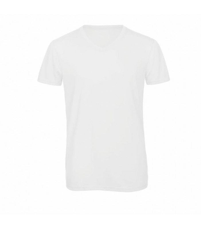 -a v in tessuto triblend 50% poliestere, 25% cotone, 25% viscosa con una vestibilità perfetta e un effetto al tatto morbidissimo. traspirante e molto resistente. pulita e minimal, ideale per ogni occasione. soluzione b&c no label, perfetta per l