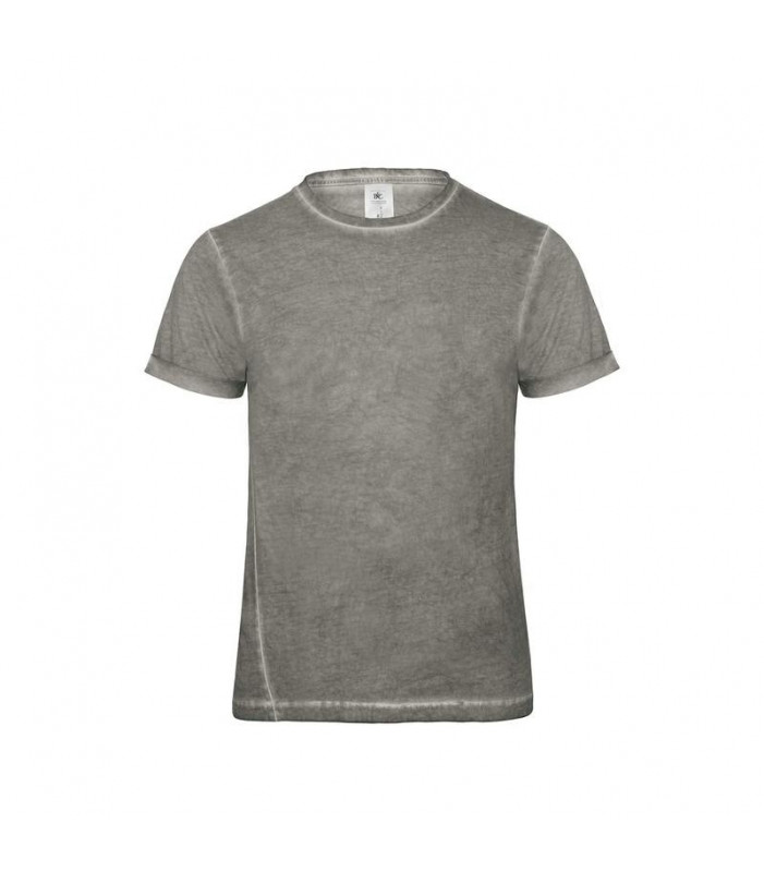 t-shirt girocollo manica corta, 100% cotone preristretto single jersey. trattamento con tintura a freddo per un effetto vintage. cuciture laterali avvitate per una moderna vestibilità. maniche set-in, con risvolto.