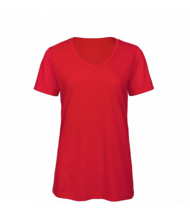 t-shirt a v in tessuto triblend 50% poliestere, 25% cotone, 25% viscosa con una vestibilità perfetta e un effetto al tatto morbidissimo. traspirante e molto resistente. le cuciture sui fianchi garantiscono la migliore vestibilità e una sagoma femminile, i