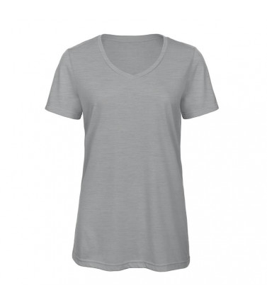 t-shirt a v in tessuto triblend 50% poliestere, 25% cotone, 25% viscosa con una vestibilità perfetta e un effetto al tatto morbidissimo. traspirante e molto resistente. le cuciture sui fianchi garantiscono la migliore vestibilità e una sagoma femminile, i