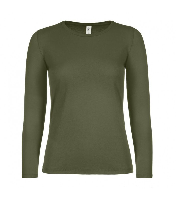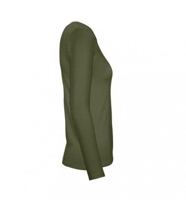 100% cotone ring-spun preristretto. t-shirt a manica lunga da donna, struttura con cuciture laterali, collo a costina sottile, etichetta satinata, leggermente sfiancata, superficie ideale per la stampa. col. sg620: 85% cot. 15% vis.