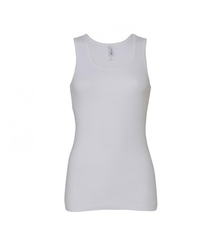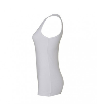 canotta 100% cotone pettinato e ring-spun, 195 gr. girocollo con costina 1x1, cuciture laterali, taglio femminile extra lungo.