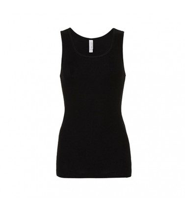 canotta 100% cotone pettinato e ring-spun, 195 gr. girocollo con costina 1x1, cuciture laterali, taglio femminile extra lungo.