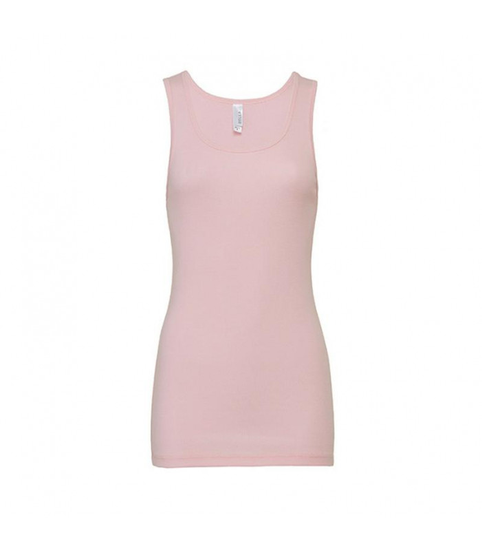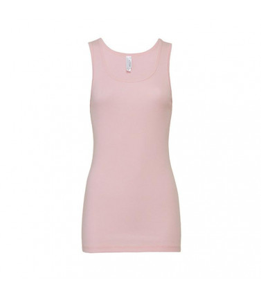 canotta 100% cotone pettinato e ring-spun, 195 gr. girocollo con costina 1x1, cuciture laterali, taglio femminile extra lungo.