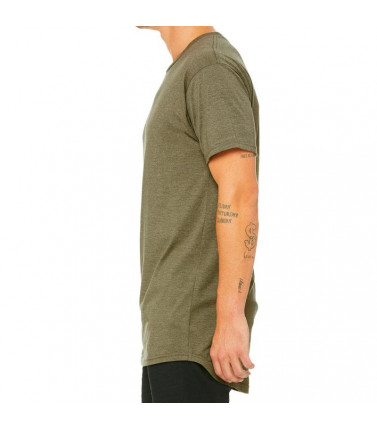 t-shirt 100% cotone pettinato e ring-spun con lunghezza del corpo aumentata per uno stile moderno ed urbano. cuciture laterali e orlo inferiore arrotondato. dark grey heather: 52% cotone pettinato e ring-spun, 48% poliestere. 142 g/m2.