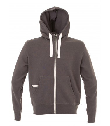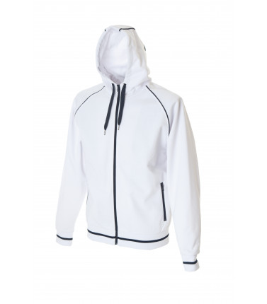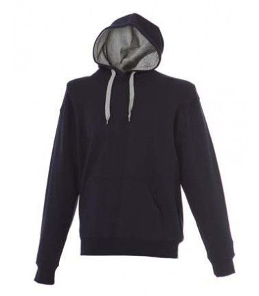felpa con cappuccio con cordini bianchi in contrasto. tasche a marsupio, polsini e orlo inferiore a costine. cuciture laterali e vestibilità unisex. tessuti: colori solidi: 60% cotone pettinato e ring-spun, 40% poliestere, 220 gr.