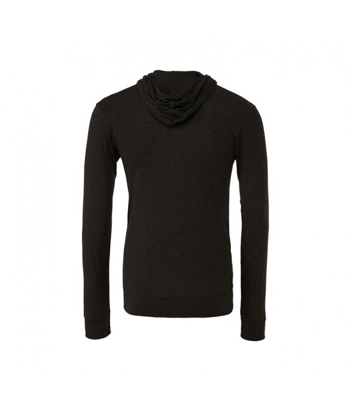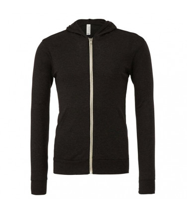 felpa unisex, in tessuto 'triblend': 50% poliestere, 25% cotone pettinato e ring-spun, 25% rayon. tessuto leggero 190 gr, appositamente progettato con una superficie liscia, ideale per la stampa. zip intera, cappuccio senza cordini, tasche a marsupio. cuc