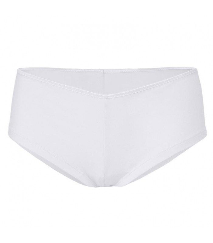 95% cotone pettinato e ring-spun, 5% spandex. shortie a vita bassa, bordino satin ed elastico in vita.