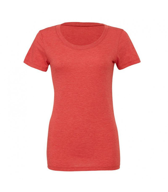 t-shirt girocollo manica corta, 115 gr. in tessuto 'triblend': composto da 50% poliestere, 25% cotone pettinato e ring-spun, 25% rayon. cuciture laterali, vestibilità moderna femminile dalla linea più lunga.